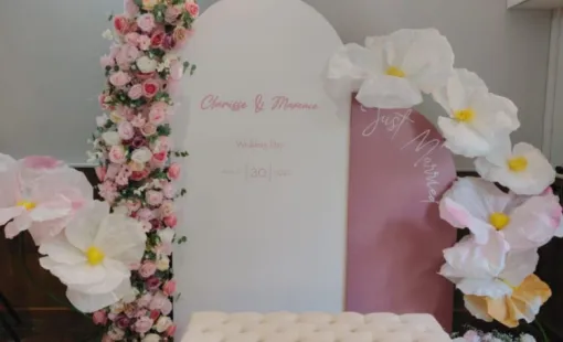 Nathalie Caron Event's Créations est intervenu pour la décoration d'un coin photo pour un mariage au château de Moliens.
